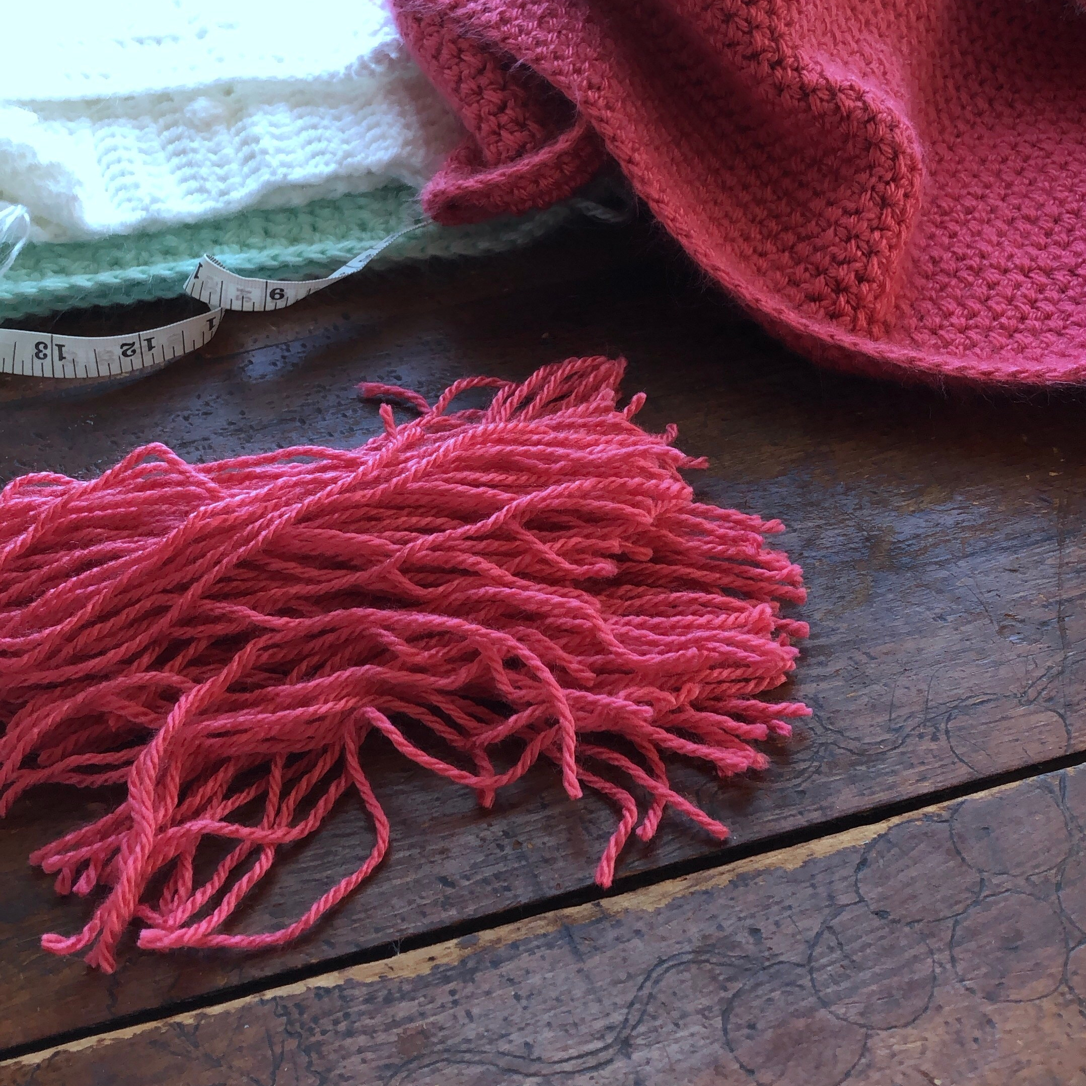Luckily this is a baby blanket and doesn’t need to be big! So using 3 colors worked out perfectly. Since it’s such a simple blanket, I wanted to add some detailing without it looking too intricate. I liked the edges the way they looked raw, so I didn’t want to border it. I decided to do a fringe on each end of the blanket that would be the same color as the adjacent color block. This gives it something to adorn it but it blends seamlessly and doesn’t take away from the simplicity. My tassels ended up being 3.5 inches long. I used Fox in Socks because it was on my living room floor (#momlife), but ended up trimming it a little bc babies don’t need long things to get their fingers trapped in.